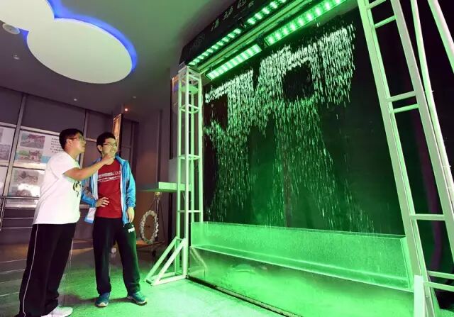 4月26日,南京航空航天大学学生研制的“数字水幕”装置专利申报展示。新华社记者孙参 摄
